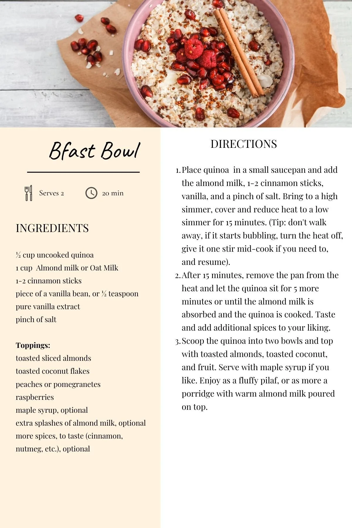 Another alternative recipe - instead of oat, try a gluten free, high protien packed morning bowl of flavor topped with your favorite fruits and seeds.